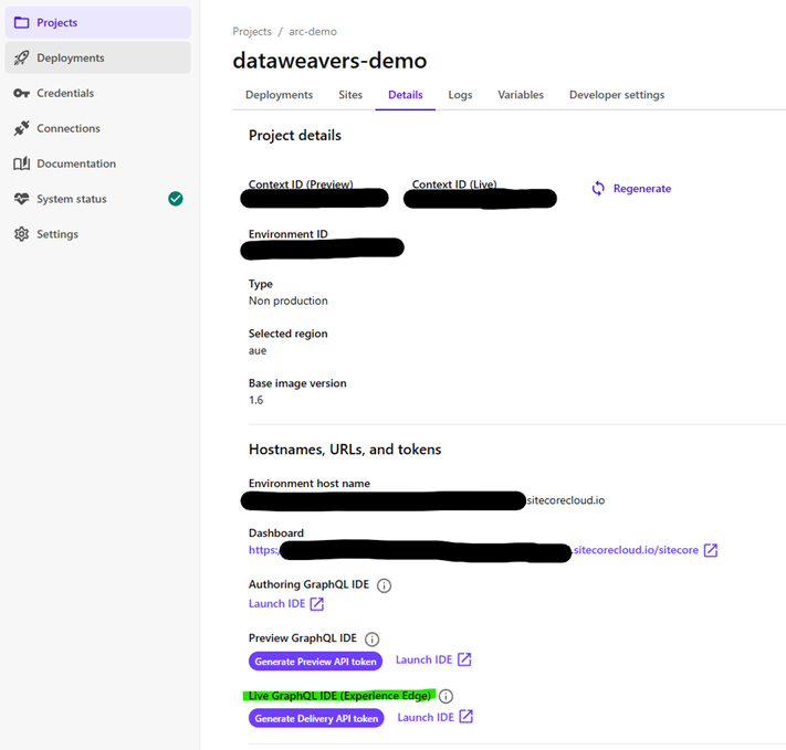 To retrieve the Experience Edge GraphQL API Key, navigate to the project and environment inside Sitecore AI. Click “Generate Delivery API Token” and copy the result into the Spark configuration app.